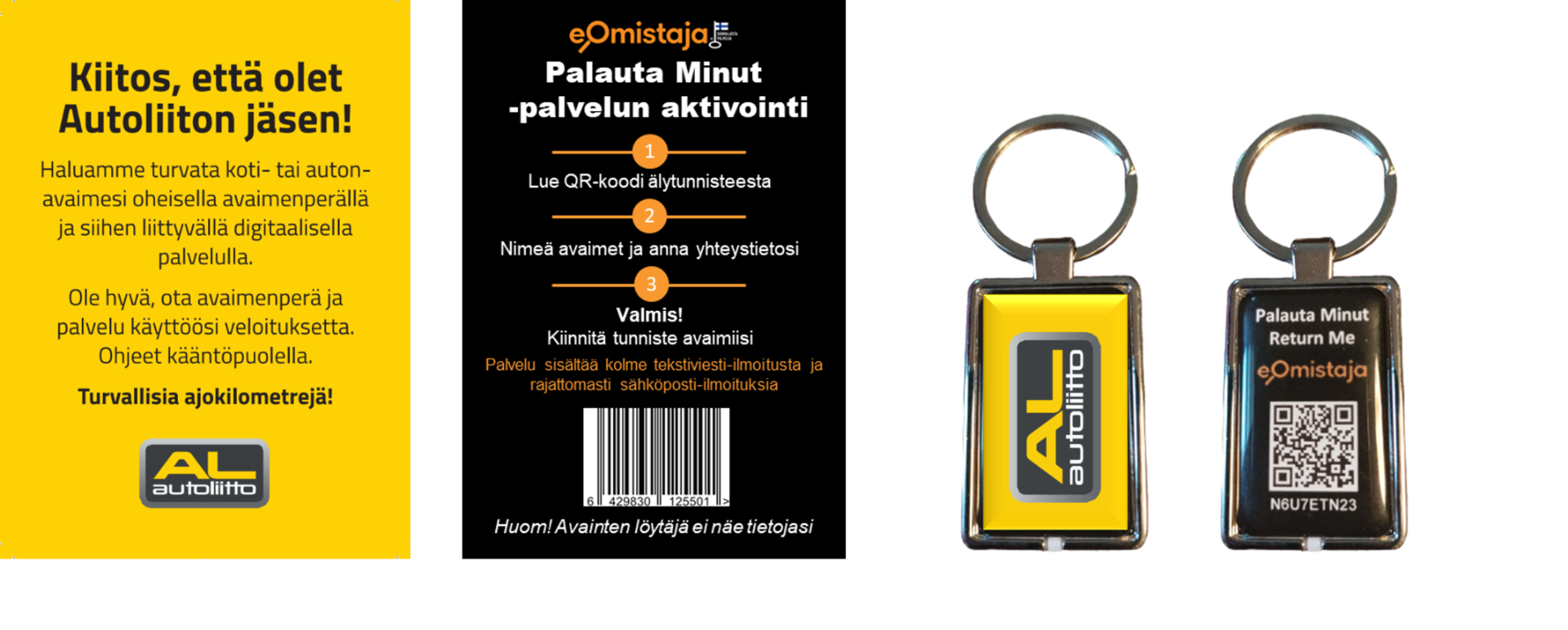 Palauta Minut -palvelulla voitte teettää täysin yrityksenne brändin mukaisia tunnisteita: avain- ja tarratunnisteita sekä tyylikkäitä pakkauksia. Kaikki personoidaan logollanne ja visuaalisella ilmeellänne.